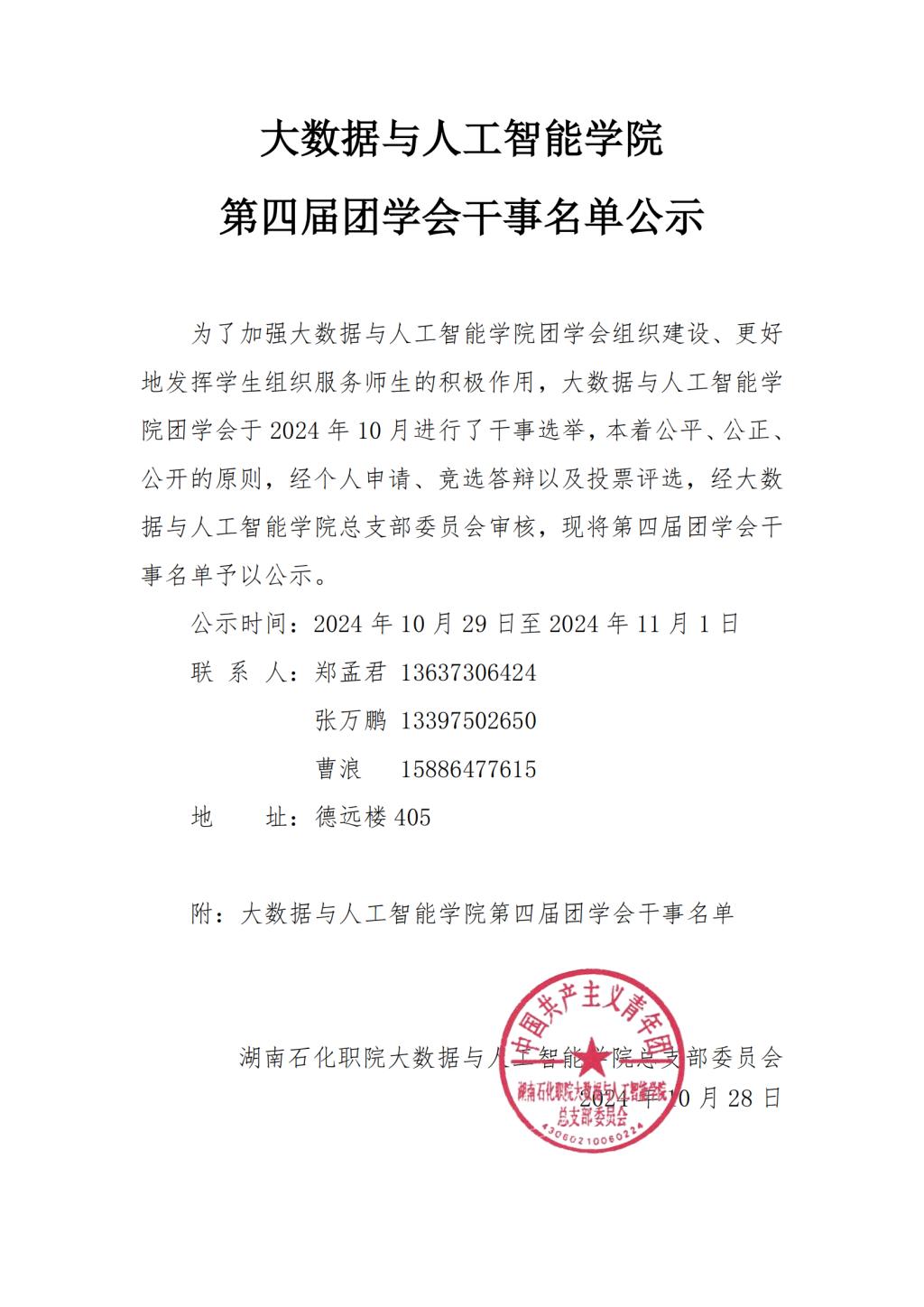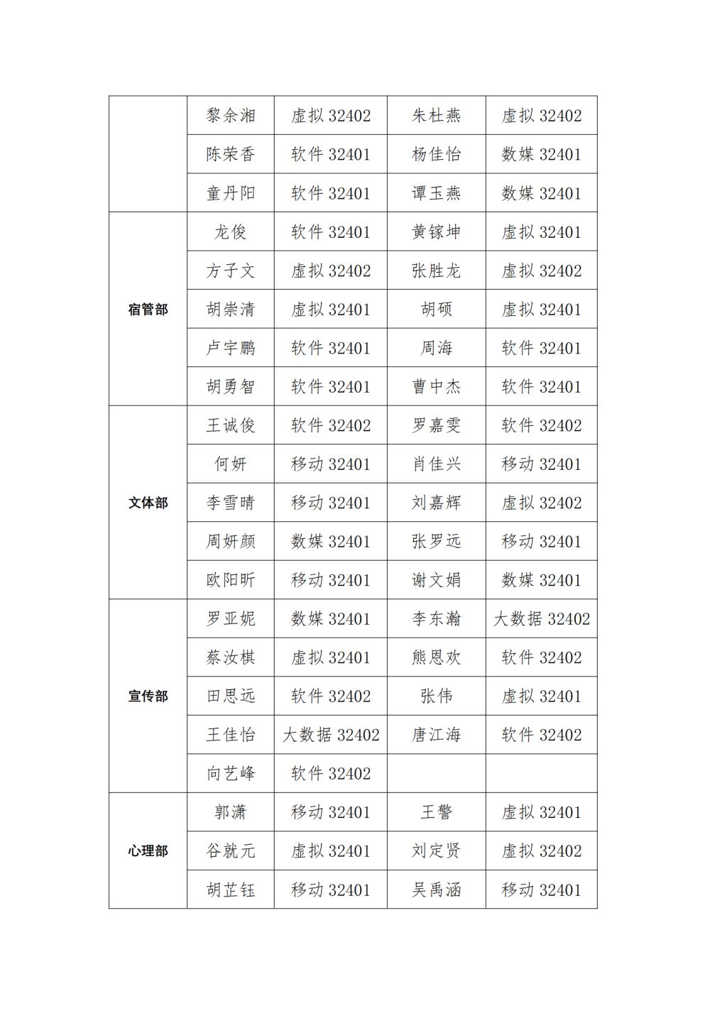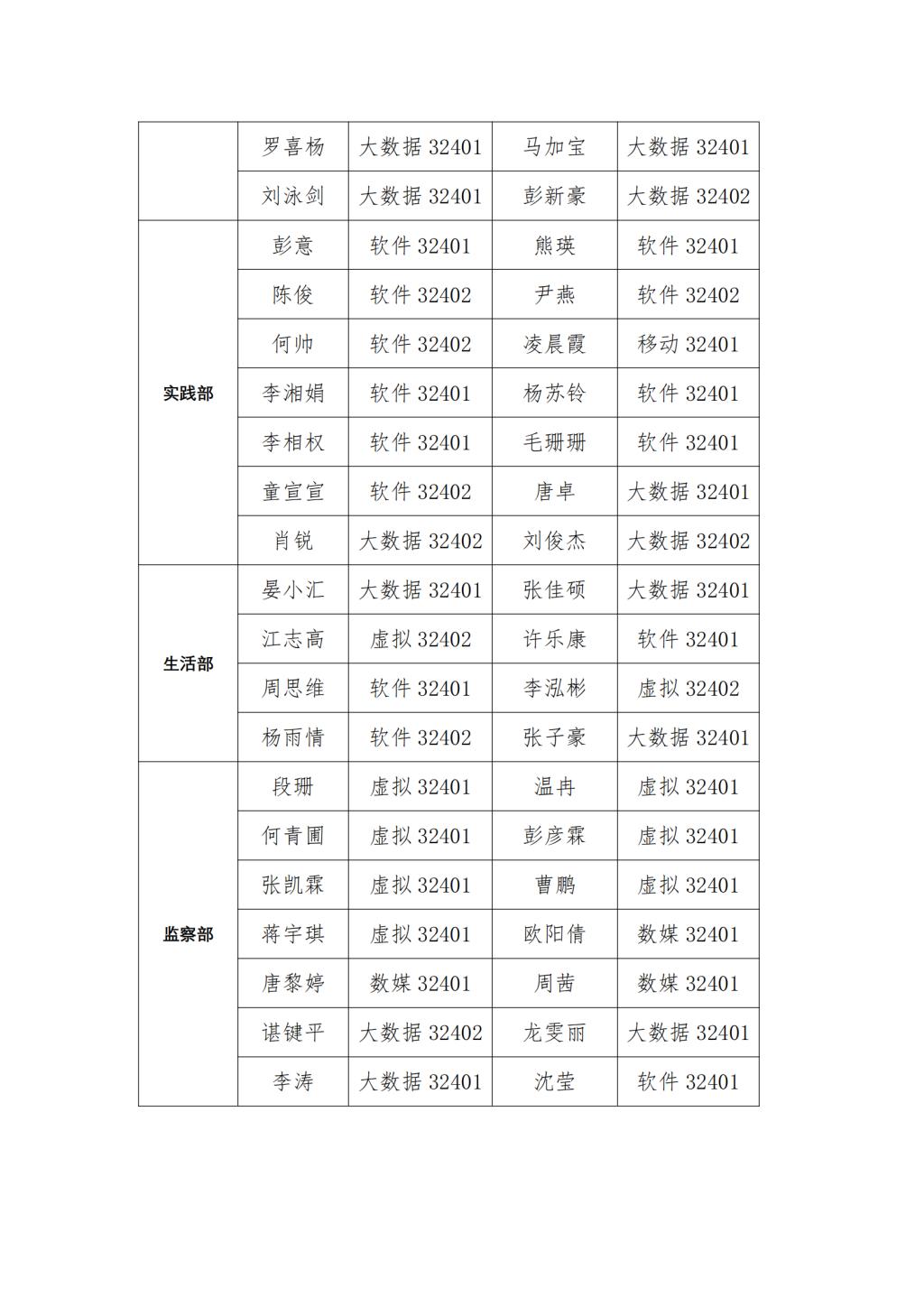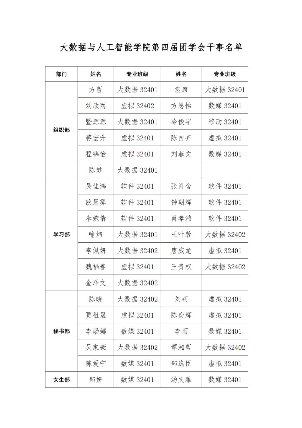 大数据与人工智能学院第四届团学会干事名单公示