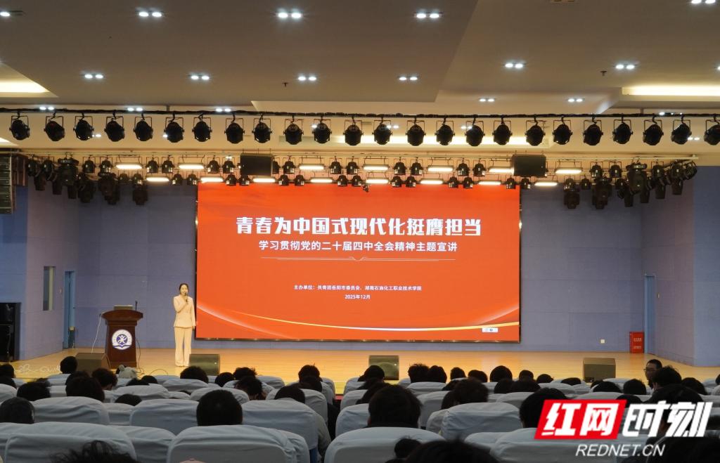 【红网】岳阳共青团“80、90、00”青年讲师团走进湖南石化职院 宣讲党的二十届四中全会精神