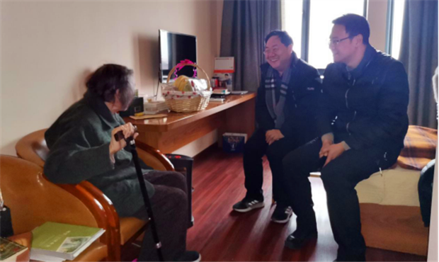 石道金院长走访慰问退休教师 1月15日,石道金院长、周凯副书记和工会主席刘龙青一行看望了吴静和等退休老教授,与他们亲切交谈,询问他们的生活和身体状况,对他们长期以来对学院的关心和支持表示敬意,衷心地祝愿他们新年快乐、健康长寿,并为他们送上了新春祝福。多年来,学院一直非常关心退休教师的生活,每年学院领导都会去亲自慰问退休教师,逢年过节还会送上学院的祝福,使退休老教师们感受到了经管学院大家庭浓浓的人文关怀。