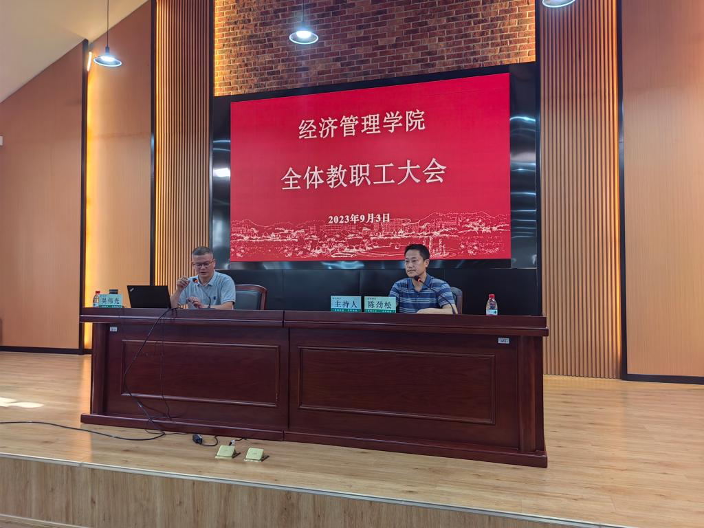 学院召开全体教职工大会 9月3日下午,学院在衣锦农林大讲堂召开新学期全体教职工大会。学院领导班子成员及全体教职工参加会议。大会由党委书记陈劲松主持。院长吴伟光通报了学院工作进展,并对下半年的重点工作进行了部署。他指出,经管学院要把握自身所处的方位,找准努力的方向,充分发挥学院在农林大学人文社科学院中的引领作用,以构建高水平人才培养体系为导向,认真贯彻落实学校的工作部署,发挥学院的学科特色优势,扎实推进学院人才引培、组织...