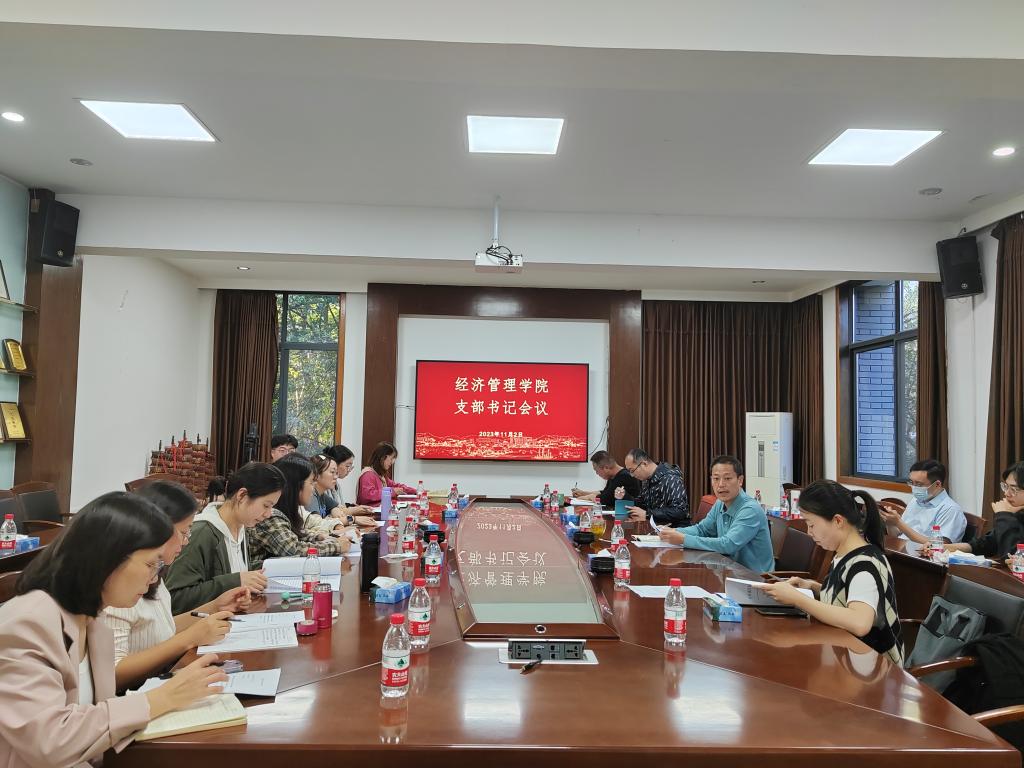 经管学院召开学生党支部工作研讨会 近日,经管学院召开学生党支部工作研讨会,学院党委副书记胡云云主持会议,各学生党支部书记参会。会上,胡云云对学院“成长1+1”品牌建设实施方案进行了强调,各学生党支部围绕支部建设情况、“成长1+1”品牌建设落实情况、党员发展摸排情况等进行了汇报交流。胡云云强调,要立足“七个有力”,加强基层党支部建设,凝练特色,提升党支部凝聚力。通过本次研讨会,各学生党支部进一步强化了品牌意识、特色意识和创新意识,为“...