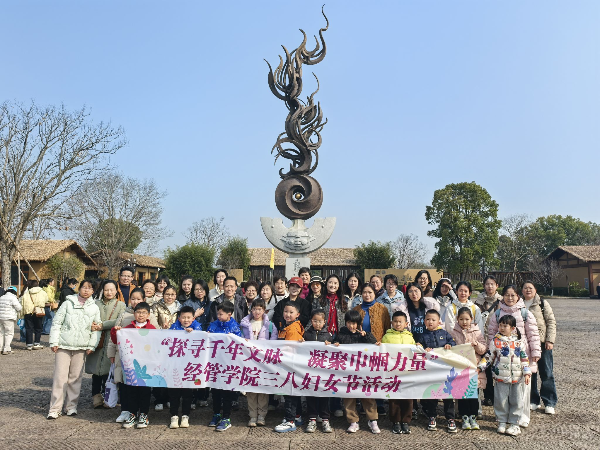 探寻千年文脉 凝聚巾帼力量-----经管学院开展”三八”妇女节团建活动 为营造节日氛围,凝聚“半边天”合力,彰显新时代女性风采,经管学院举行“探寻千年文脉 凝聚巾帼力量”的主题团建活动,学院党委书记陈劲松带队40余名女教工参与。在余杭良渚古城遗址公园,老师们近距离感悟中华五千年文明的魅力,在国家版本馆,老师们领略了中华优秀传统文化的绚烂,感受到了中华民族厚重的历史。活动最后,老师们前往良渚文化艺术中心(玉鸟集),体验建筑、景观、空间、视觉等自然与文艺反哺日常生活的美,...