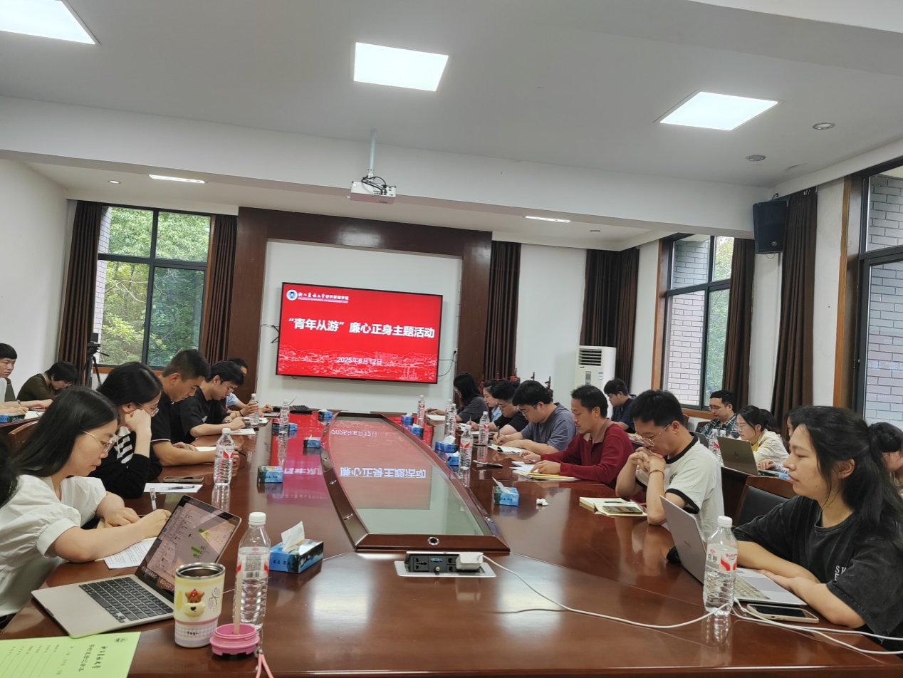 经管学院开展“青年从游”廉心正身主题活动 为深入贯彻中央八项规定精神学习教育,6月12日,学院开展“青年从游”廉心正身主题活动。活动由学院党委书记陈劲松主持,学院40周岁以下青年教师与管理人员参加。陈劲松强调了学习教育的重要意义与加强作风建设的重要性,详细解读了学校“青年从游”廉心正身主题活动实施方案。同时通过深入剖析违反中央八项规定精神典型案例,引导与会人员提高思想觉悟,筑牢纪律防线。他指出,青年教师刚处于人生事业的起步和发展阶段,建功立...