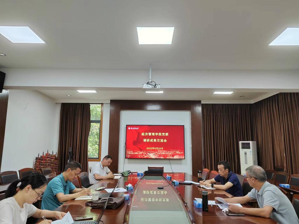 8月24日上午,经管学院在西大楼208会议室召开学习贯彻习近平新时代中国特色社会主义思想主题教育调研成果交流研讨会。学院领导班子参加会议。会议由学院党委书记陈劲松主持。