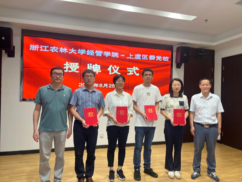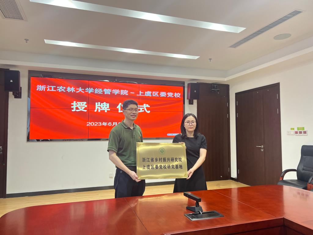 6月25日,太阳成集团tyc33455cc官网与上虞区委党校授牌聘任仪式在上虞区委党校行政楼一楼会议室举行。学院院长吴伟光、党委书记陈劲松、副院长朱臻、乡村振兴研究院执行院长潘伟光教授、社会合作办公室主任朱永法教授,上虞区委党校常务副校长宋世洋、副校长程江桥、副校长潘新新等参加了仪式。仪式由宋世洋主持。