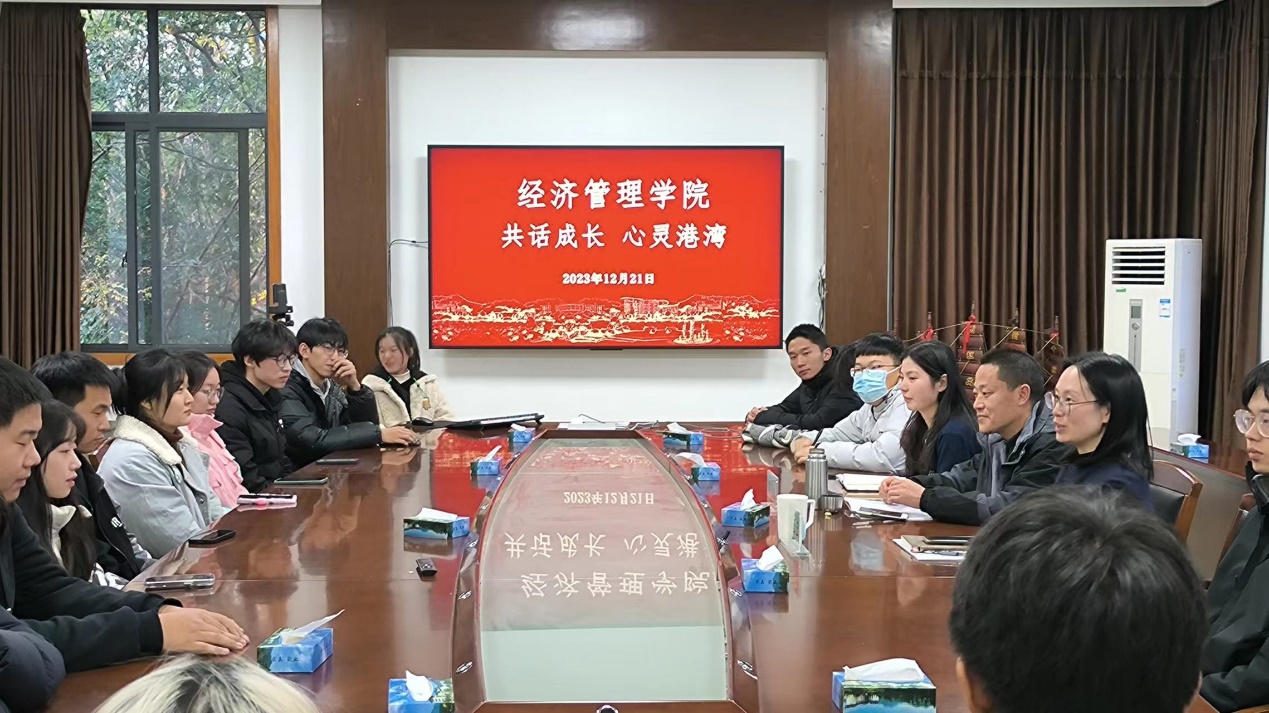 12月21日,为进一步加强师生沟通,扎实做好学生服务工作,经管学院举办“共话成长-东湖心灵港湾”活动。学院党委书记陈劲松、党委副书记胡云云、心理辅导站站长王子旋及学生代表30余人参加。