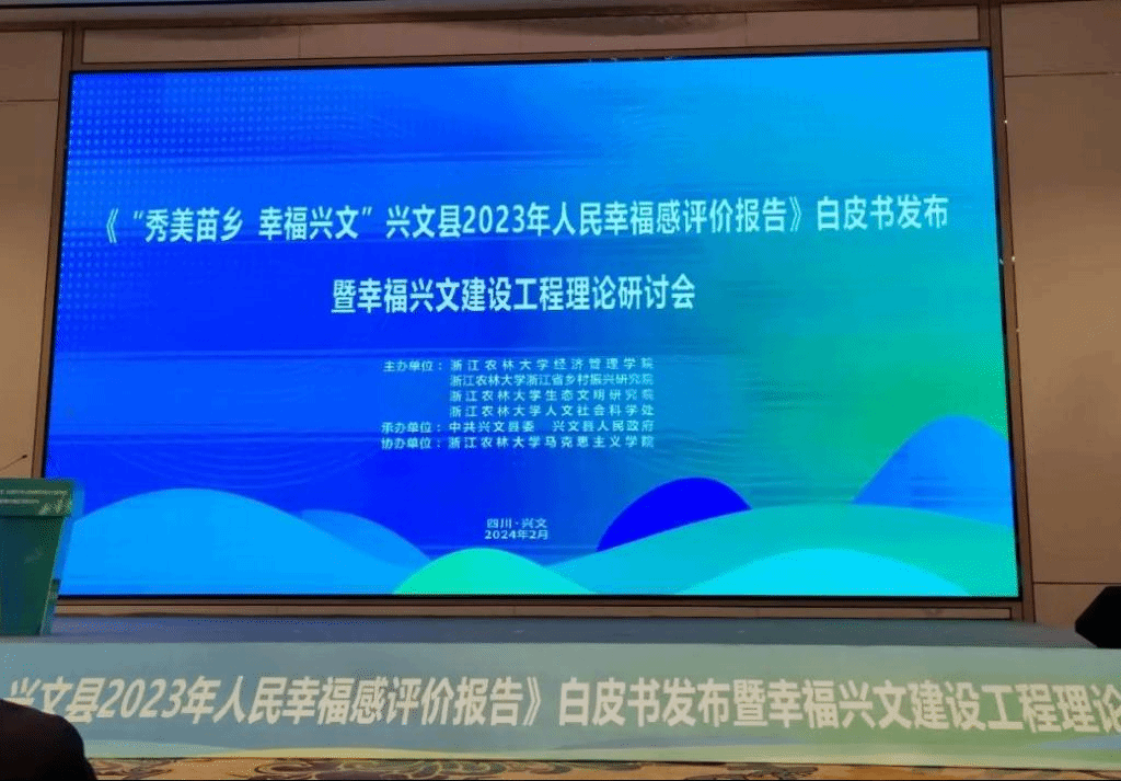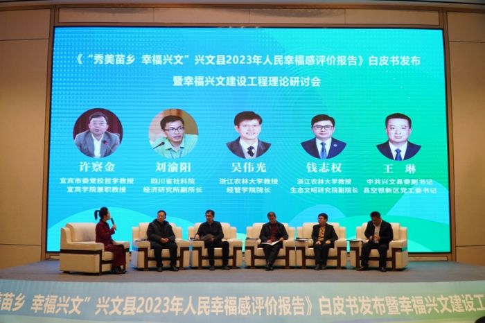 2月27日,由太阳成集团tyc33455cc官网与浙江省乡村振兴研究院、生态文明研究院、人文社会科学处主办,中共兴文县委、兴文县人民政府承办,马克思主义学院协办的《“秀美苗乡 幸福兴文”兴文县2023年人民幸福感评价报告》白皮书发布暨幸福兴文建设工程理论研讨会在四川省宜宾市兴文县举行。