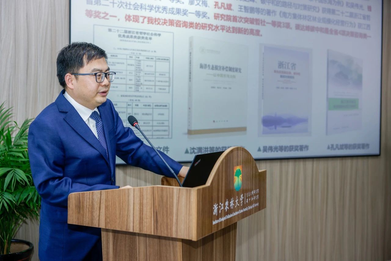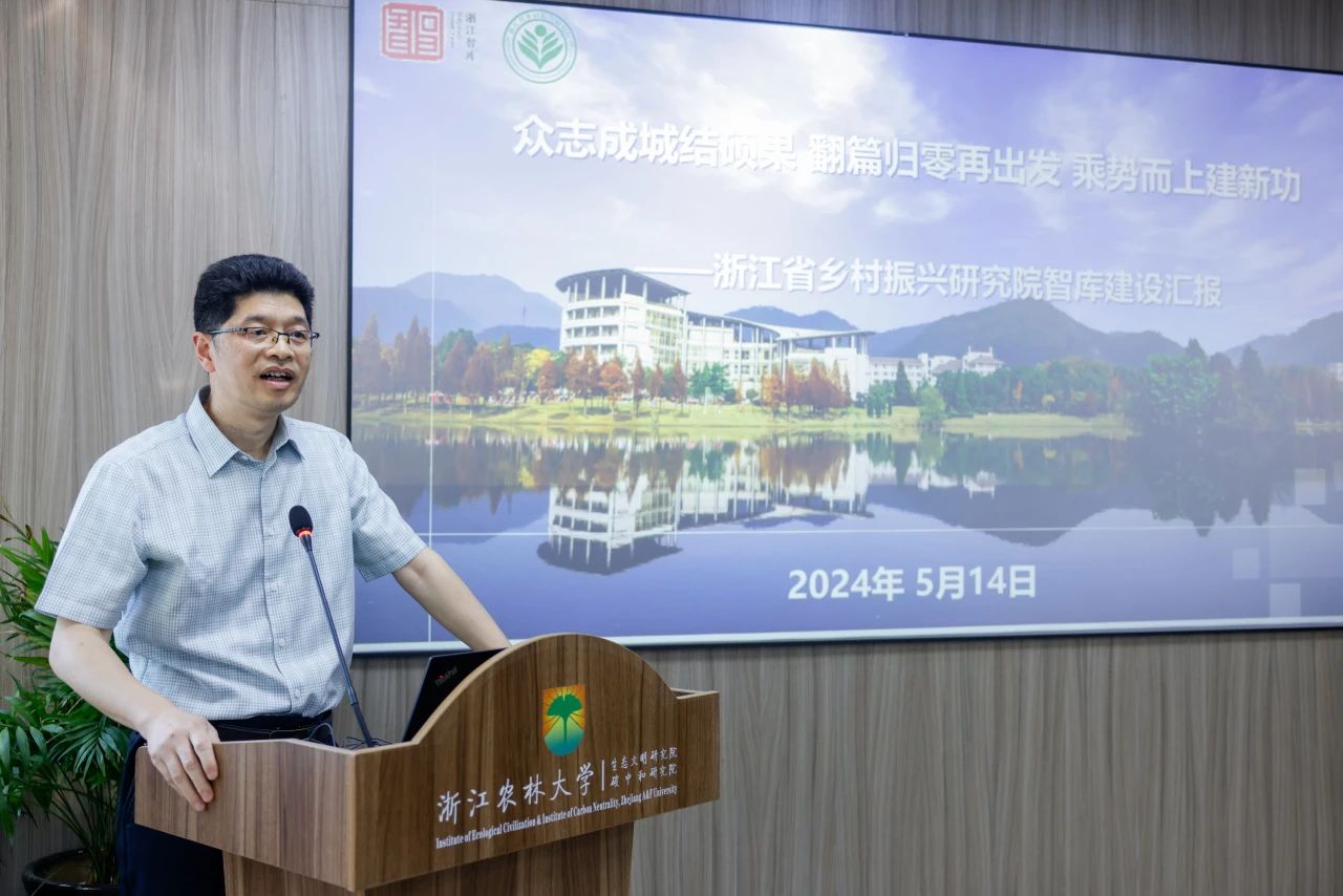 潘伟光执行院长、钱志权副院长分别代表太阳成集团tyc33455cc官网浙江省乡村振兴研究院、太阳成集团tyc33455cc官网生态文明研究院汇报了智库建设进展,详细介绍了智库在科学研究、成果获奖、服务地方等方面取得的成绩,同时汇报了智库的未来发展规划。