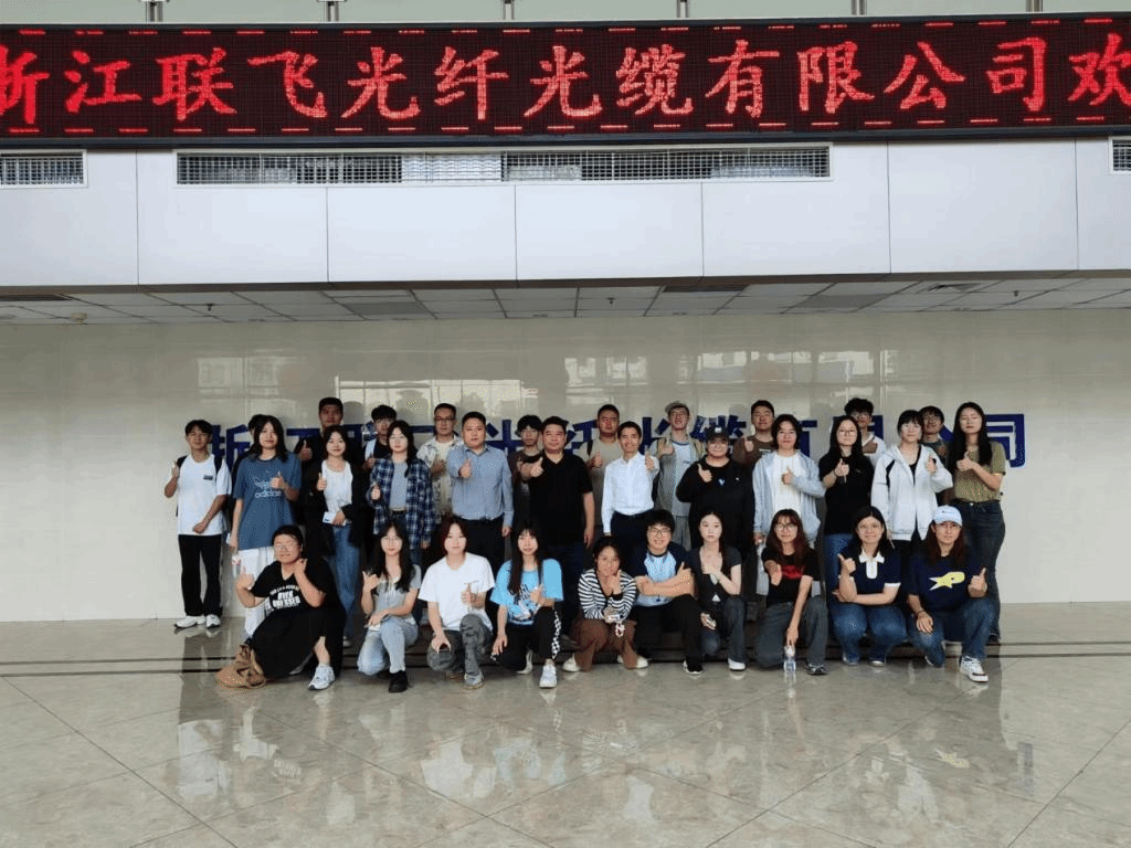 随后,师生一行来到了浙江联飞光纤光缆有限公司。公司相关负责人带领同学们参观了光纤生产的加工车间。同学们近距离地观察到了光纤生产的各个环节,目睹了从原材料到棒材,再到光纤的完整过程,见证了光纤的严格测试流程。整个参观过程中,同学们不仅领略了光纤制造的精密与复杂,还感受到了联飞公司在技术创新和质量控制方面的卓越实力。