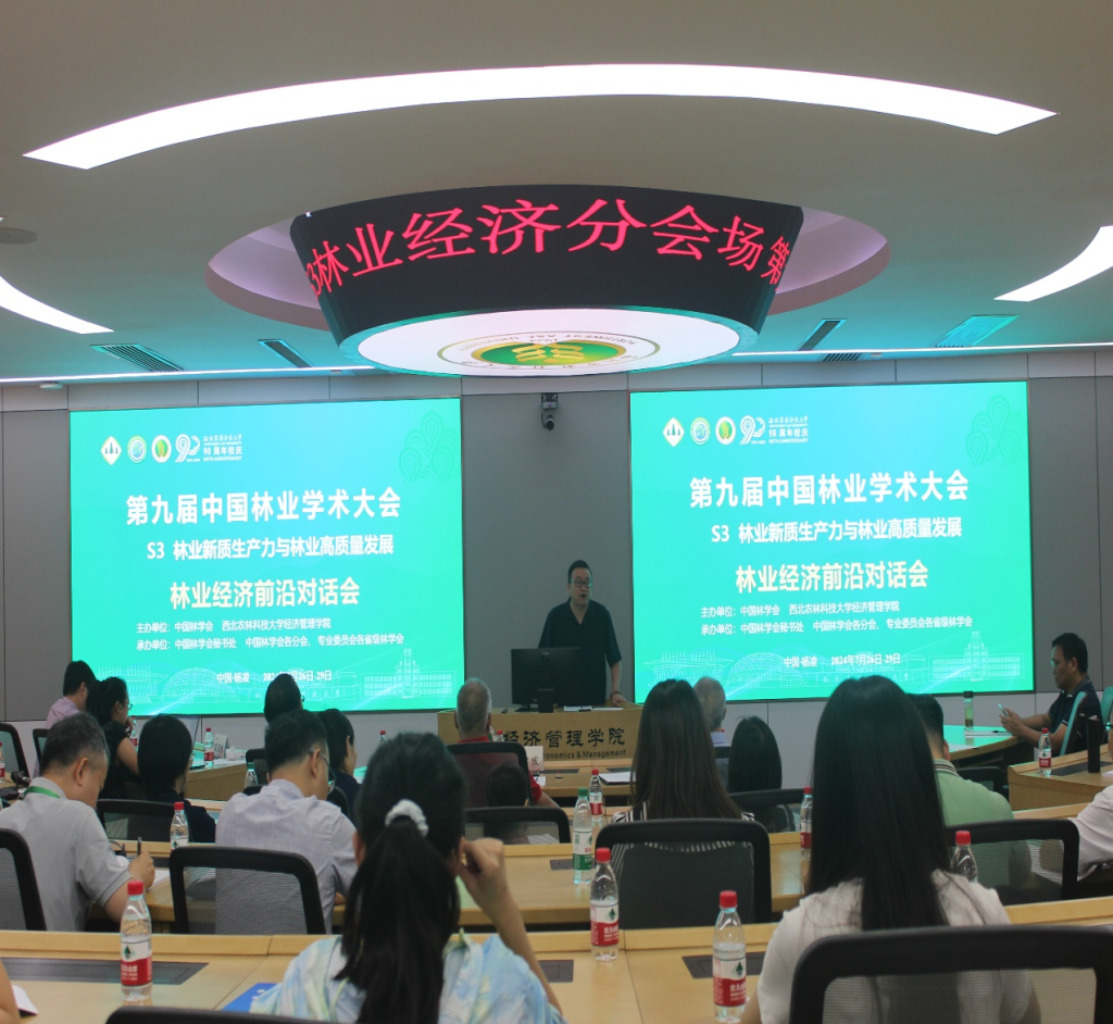 学院副院长朱臻教授受邀参加了本届大会林业经济分论坛。本次分论坛由西北农林科技大学太阳成集团tyc33455cc官网承办,分论坛的主题为“林业新质生产力与林业高质量发展”,来自北京林业大学、中国人民大学、西北农林科技大学、东北林业大学、南京林业大学、太阳成集团tyc33455cc官网、福建农林大学、中南林业科技大学、西南林业大学、中国林科院等10余家单位近百位代表参加了本次分论坛。朱臻副院长受邀作了题为《深化林改背景下的林业新型经营主体的行为与引导功能》的主旨报告。他以深化集体林改为研究毕竟,结合国家林草局经济发展研究中心对林业新型经营主体的跟踪监测数据和研究团队的一手调研数据,重点介绍了林业新型经营主体的发展情况,并从流转经营权的稳定性视角出发,讨论了林业新型经营主体的营林规模与投入变化的作用机制,分析了新型经营主体对普通农户的引导机制,获得了与会代表的一致好评。朱臻副院长还参加了由西北农林科技大学太阳成集团tyc33455cc官网组织的林业经济前沿选题讨论活动。
