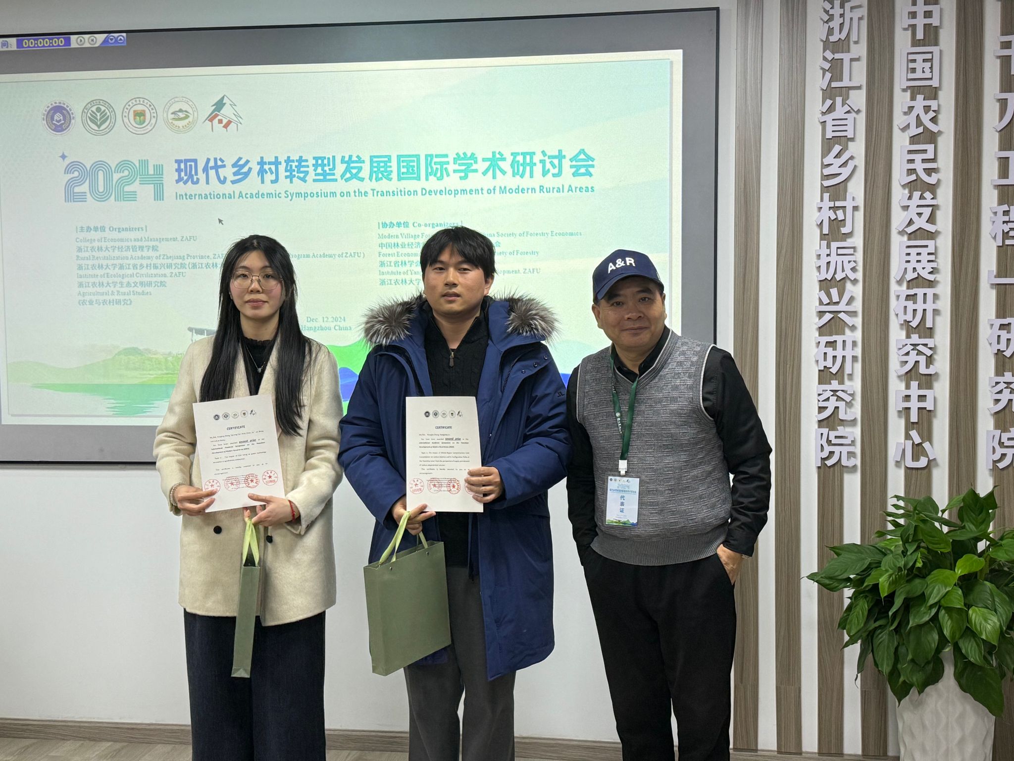 青年学者论坛中,共有20位研究生就自己的科研成果进行了英文汇报交流。最后,大会共评出9篇优秀论文。其中研究生丁永鹏同学的论文《Can Both “Business friendly” and “livability” Be Achieved: A Study on the Pilot Policy of Return-to-Hometown Entrepreneurship on Air Quality》被评为一等奖;程相波同学的论文《 The Impact of Whole-Region Comprehensive Land Consolidation on Carbon Balance and Its Configuration Paths at the Township Level: from the perspective of supply and demand of carbon sequestration services》、蔡沁颖同学的论文《 The impact of ESG rating on green technology innovation in agroforestry enterprises》、陈娟娟同学的论文《The Impact of the County-to-District Transition on Rural Consumption Inequality in China》被评为二等奖;张琰同学的《 The impact of home-based elderly care services on the mental health of older people: a synergistic perspective》、陆梦婷同学的《 Access to Information, Supervision of Quality, and Internet Meal Food Safety》、过烨怡同学的《Improving nudge strategies for low-carbon consumption》、余晓凤同学的《 Direct and spillover effects of agribusiness on grain output-Evidence from China》、夏文浩同学的论文《Spatiotemporal Patterns and Convergence Analysis of Agricultural Green Total Factor Productivity: A Case Study of Xinjiang in China》被评为三等奖。