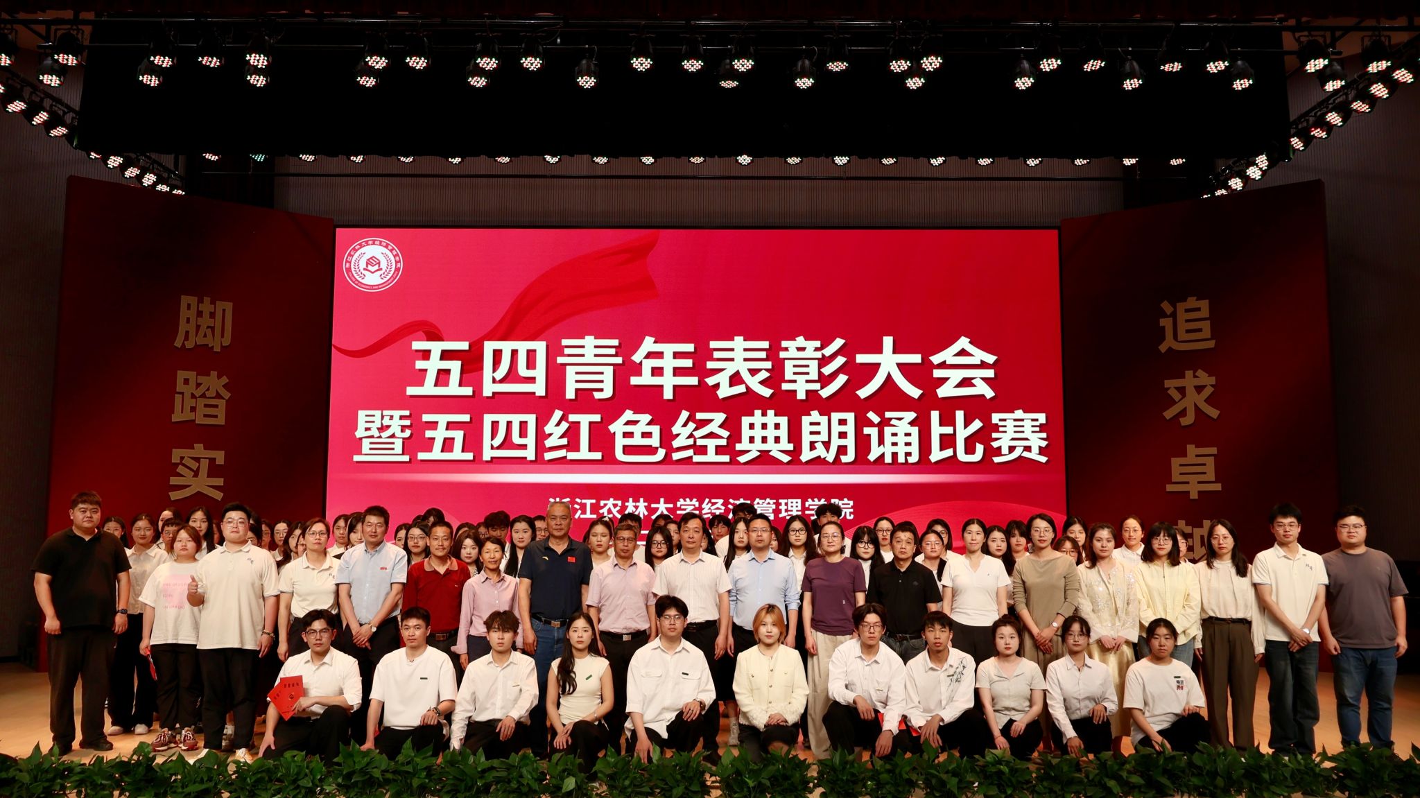 活动分五四青年表彰和“青春心向党 五四诵华章”红色经典朗诵比赛两部分。学院表彰了在学风建设、社会实践、创新创业、团学工作、文体活动等领域取得优异成绩的经管学子,和在教学科研、人才培养等领域潜心耕耘,无私奉献的学院教师。红色经典朗诵比赛部分,学院各专业紧扣红色主题,用集体朗诵的形式,缅怀五四先驱崇高的爱国情怀和革命精神,激发经管青年与时代同行的理想信念。