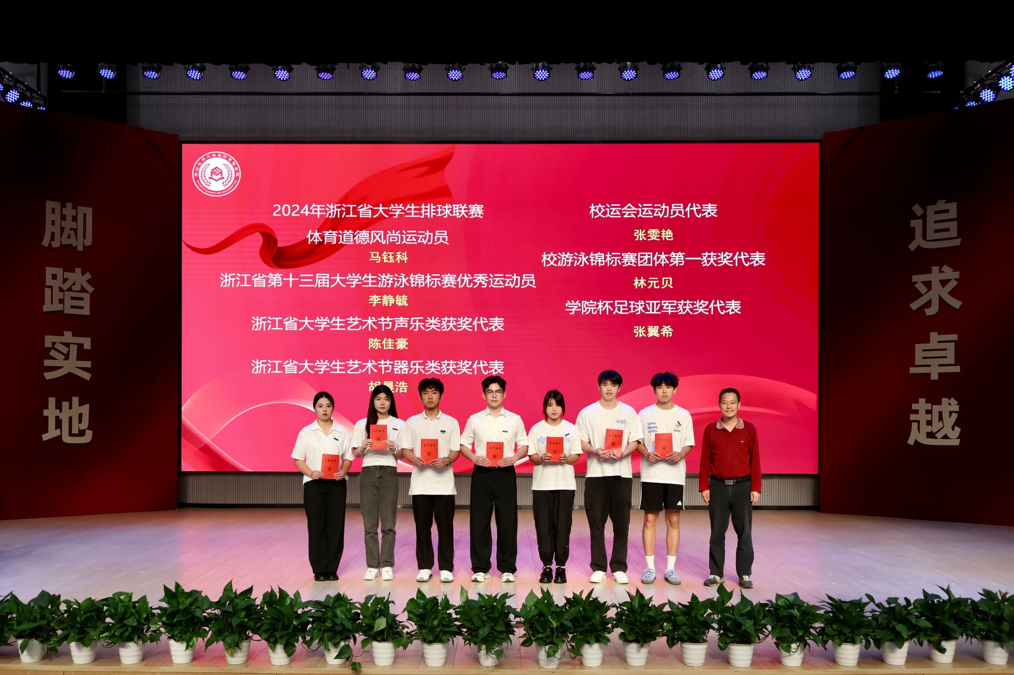 (校体育军训部主任冯祎中为优秀毕业生、升学表彰代表颁奖)