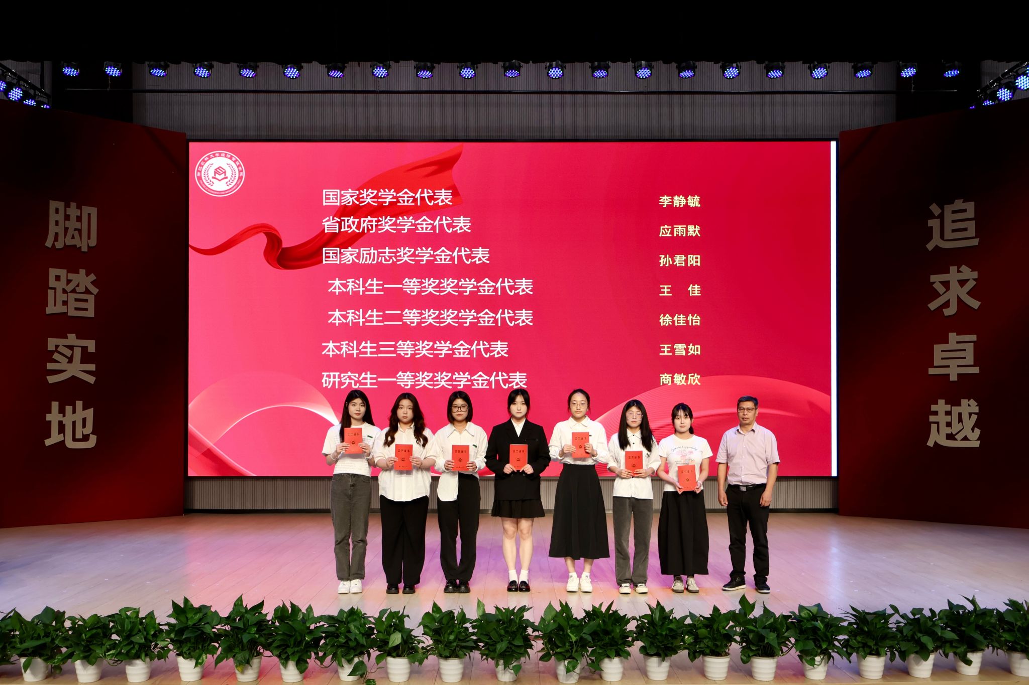 (校安全保卫部、人武部部长吴青林为各类奖学金获得者代表颁奖)