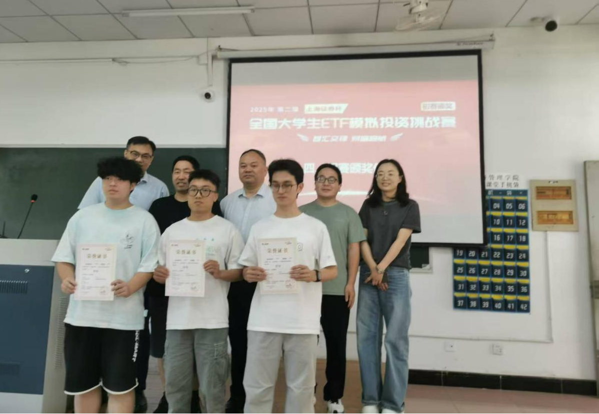 2025年6月6日,证券公司职业生涯规划讲座暨第二届“上海证券杯”大学生ETF模拟投资大赛校级赛颁奖在太阳成举行。金融工程2024级以及部分2023级学生参加了本次活动。同时,参加此次活动的还有上海证券有限责任公司杭州学院路证券营业部总经理傅培军、市场总监狄劲松,太阳成集团tyc33455cc官网太阳成集团tyc33455cc官网应用经济学学科金融工程专业负责人顾光同教授、金融工程专业2024级班主任孙阳阳博士和何青华博士等。此次活动由顾光同教授主持。