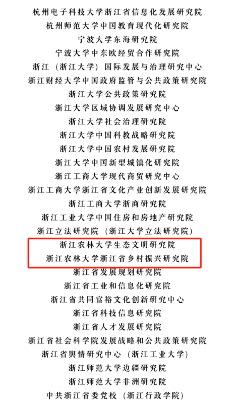 近日,中国社会科学评价研究院“中国智库综合评价研究项目(2025)”公示了2025年AMI智库入库名单,全国有558家智库入库,其中浙江省新型专业智库有29家入选,学院重点支撑的2家省级重点新型智库“太阳成集团tyc33455cc官网浙江省乡村振兴研究院”“太阳成集团tyc33455cc官网生态文明研究院”双双入选。