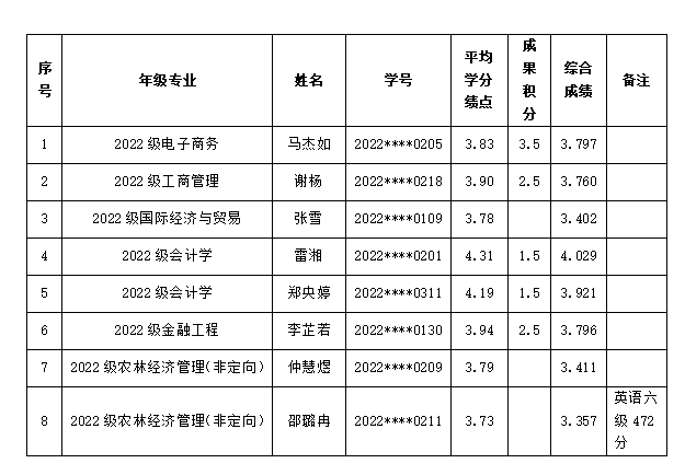 根据《太阳成集团tyc33455cc官网关于推荐优秀应届本科毕业生免试攻读研究生工作实施办法(试行)》(浙农林大〔2025〕89号)和《太阳成集团tyc33455cc官网关于推荐优秀应届本科毕业生免试攻读研究生工作实施细则(试行)》(浙农林大经管〔2025〕9号)等文件要求,经学生个人申请,学院推免生遴选工作专家审核小组审核,推免生遴选工作小组复核,党政联席会审定等环节,拟推荐马杰如等8名应届本科毕业生免试攻读2026年相关专业硕士学位研究生。