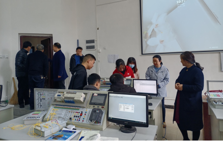 交流会后,湖南工业技师学院老师一行参观了机电工程学院的实训室。在实训室,双方就电气装置、电子技术、机械绘制CAD三个市赛项目参赛的设备配置情况、选手选拔方式等交换了意见。