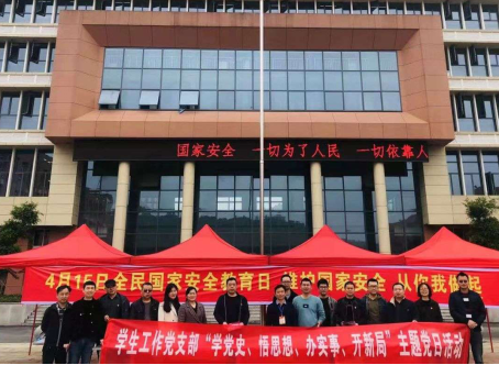 4月15日,在国家第六个全民国家安全教育日来临之际,教育与培训党支部和学生工作党支部利用午间休息时间,在思源广场开展以“国家安全教育日·反恐怖宣传教育”为主题的党日活动。党支部全体党员和入党积极分子通过制作宣传展板、发放宣传手册、进行现场讲解等形式进行安全法制教育,反恐怖知识和安全防范常识等宣传,教育引导广大师生进一步树立国家安全意识,厚植爱国主义情怀。