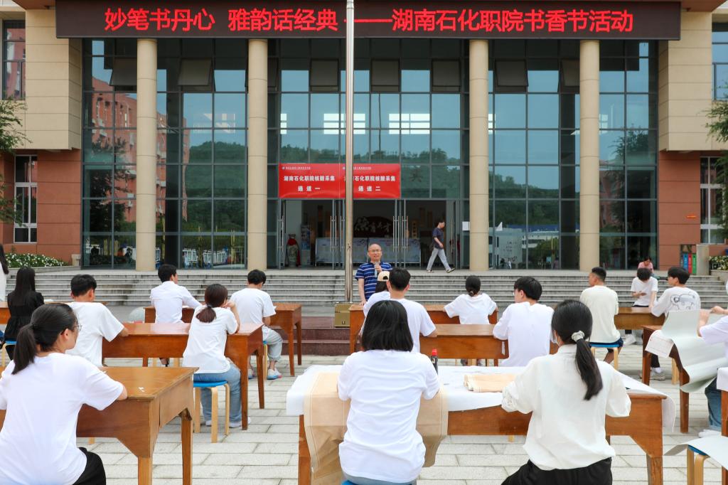 本网讯 墨韵飘香沁心扉,夏日初长好读书。5月30日下午,beat365思源广场上飘来阵阵墨香,传来朗朗笑声,由人文学院主办的“妙笔书丹心,雅韵话经典”——湖南石化职院书香节活动热闹开场。