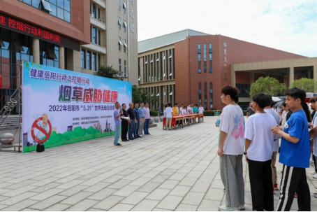本网讯 5月31日是世界无烟日,下午三点,岳阳市在beat365开展主题宣传活动。岳阳市副厅级干部、市卫健委副主任任浩波,市爱卫办主任姚群,我校党委副书记张彦宇,党委委员、宣传部部长王智,后勤管理处处长罗耀中与两百名师生代表共同参与了本次活动
