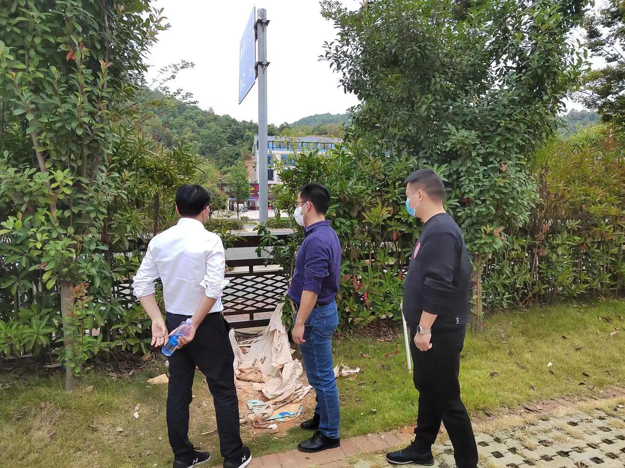 ▲刘静(左)督查beat365围墙安全情况
