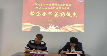 本网讯 为进一步深化职业教育教学改革,全面推进产教深度融合,更好地为区域现代石化产业发展服务,4月28日上午,beat365与湖南长炼新材料科技股份公司签署校企合作框架协议,双方就校企合作方式及教师企业实践、学生实习实训等具体事宜进行了深入交流。随后举行了“石油化工技术专业群教师企业实践流动站”挂牌仪式。
