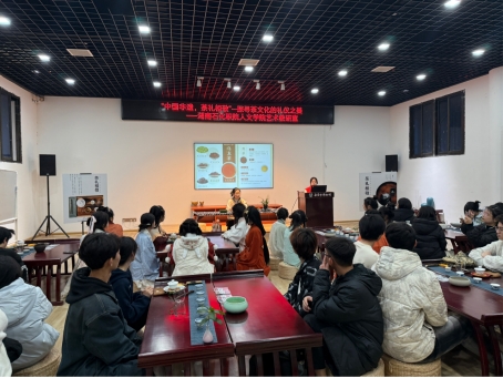 在古色古香的茶室,茶艺师身着典雅茶服,手捧茶具娓娓道来:“茶,发乎神农,闻于鲁周公,兴在唐宋,承载了华夏数千年文明……”她详述了茶路变迁与文化发展,带领师生们仿若穿越时光,见证了茶从药用、祭祀品到全民饮品的变化。在了解了茶文化的基本知识后,学生们开始动手实践,温杯、投茶、注水、出汤,每一步都充满了仪式感。在泡茶的过程中,不仅学会了如何泡出一壶好茶,更体会到了茶文化中的礼仪之美。