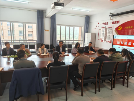 本网讯 4月27日,学校党委副书记、校长唐课文在德远楼420会议室主持召开“倾听一线教师心声”专题座谈会,与石化工程学院、石化材料学院领导班子及骨干教师代表进行深度交流。