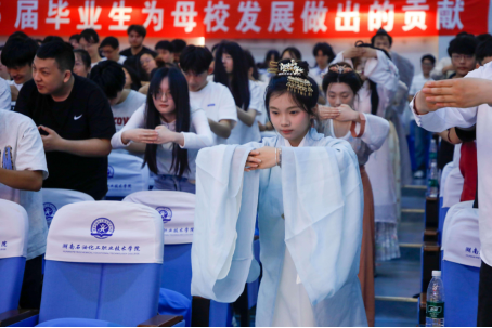 典礼上,学校党委副书记、校长唐课文在致辞中向毕业生提出“四个不负”的期许:一是激扬青春,不负时代召唤,投身新材料、智能制造等国家战略领域;二是锤炼本领,不负国家重托,传承工匠精神,助力制造业高质量发展;三是涵养品格,不负社会期盼,以责任关怀和诚信服务赢得认可;四是砥砺前行,不负母校荣光,用奋斗成就为母校增辉。