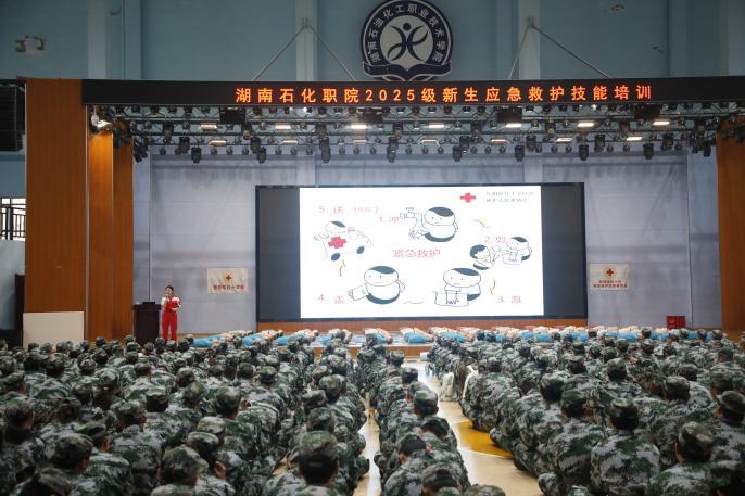 为筑牢校园安全防线,提升新生安全意识与应急处理能力,10月14日,学校学生工作部在体育文化中心举行了面向2025级全体新生的应急救护技能培训。通过系统化、专业化的教学,为新生上了一门“生命必修课”。