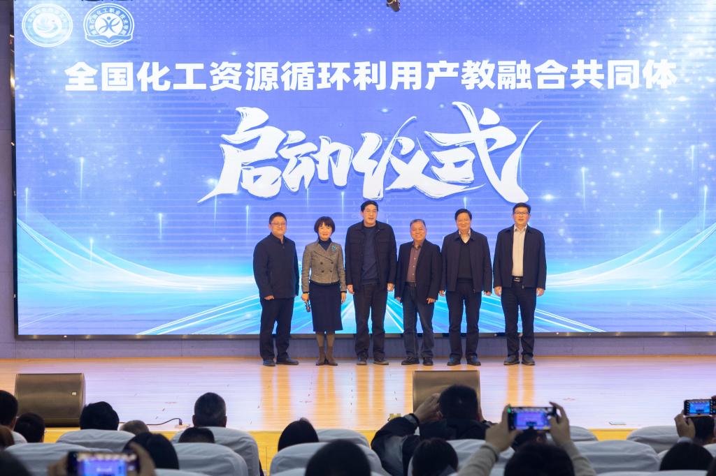 活动现场还举行了全国化工资源循环利用产教融合共同体揭牌仪式和产业学院授牌仪式。万五龙等嘉宾为共同体揭牌,张新功与徐方为循环经济产业学院授牌。