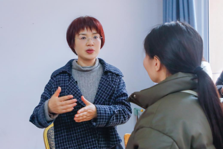 ▲徐方与教师交流