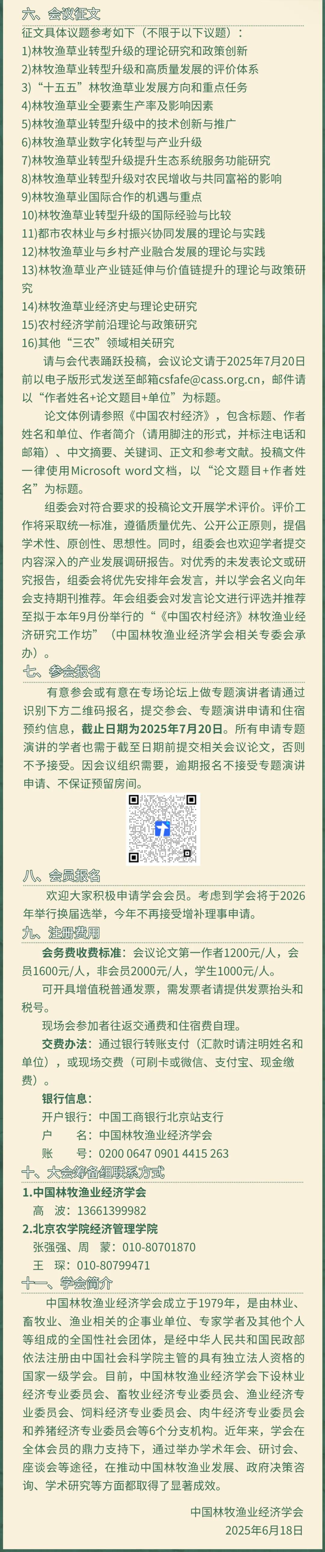 中国林牧渔业经济学会2025年年会暨林牧渔草业转型升级与“十五五”发展研讨会(第二轮通知)