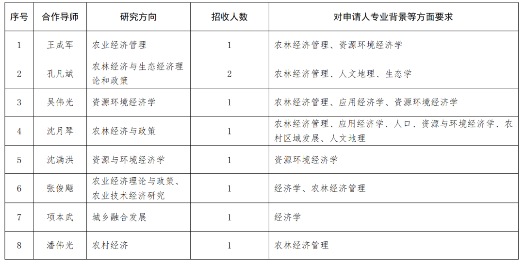 农林经济管理博士后科研流动站依托农林经济管理学科设立。该学科是浙江省一流学科(A类),国家林草局重点学科。设有农林经济管理一级博士点、农林经济管理学硕点和农业管理专硕点三个学位点。2023年度软科排名全国前15名。