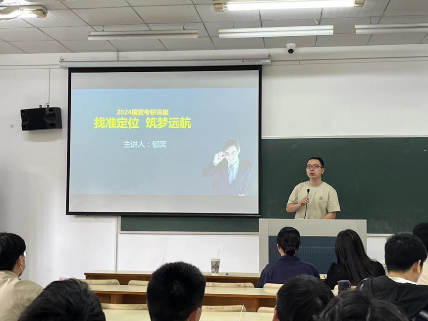 会上,钱志权老师、孔令乾老师就我校国际经济与贸易专业2022-2023年的研究生“上岸”情况做出介绍,并从各个院校、各个专业的分数线、报录比,招考难度等方面做出了细致的分析,结合历年国际经济与贸易专业考研情况对同学们择校、择专业作出具体指导。