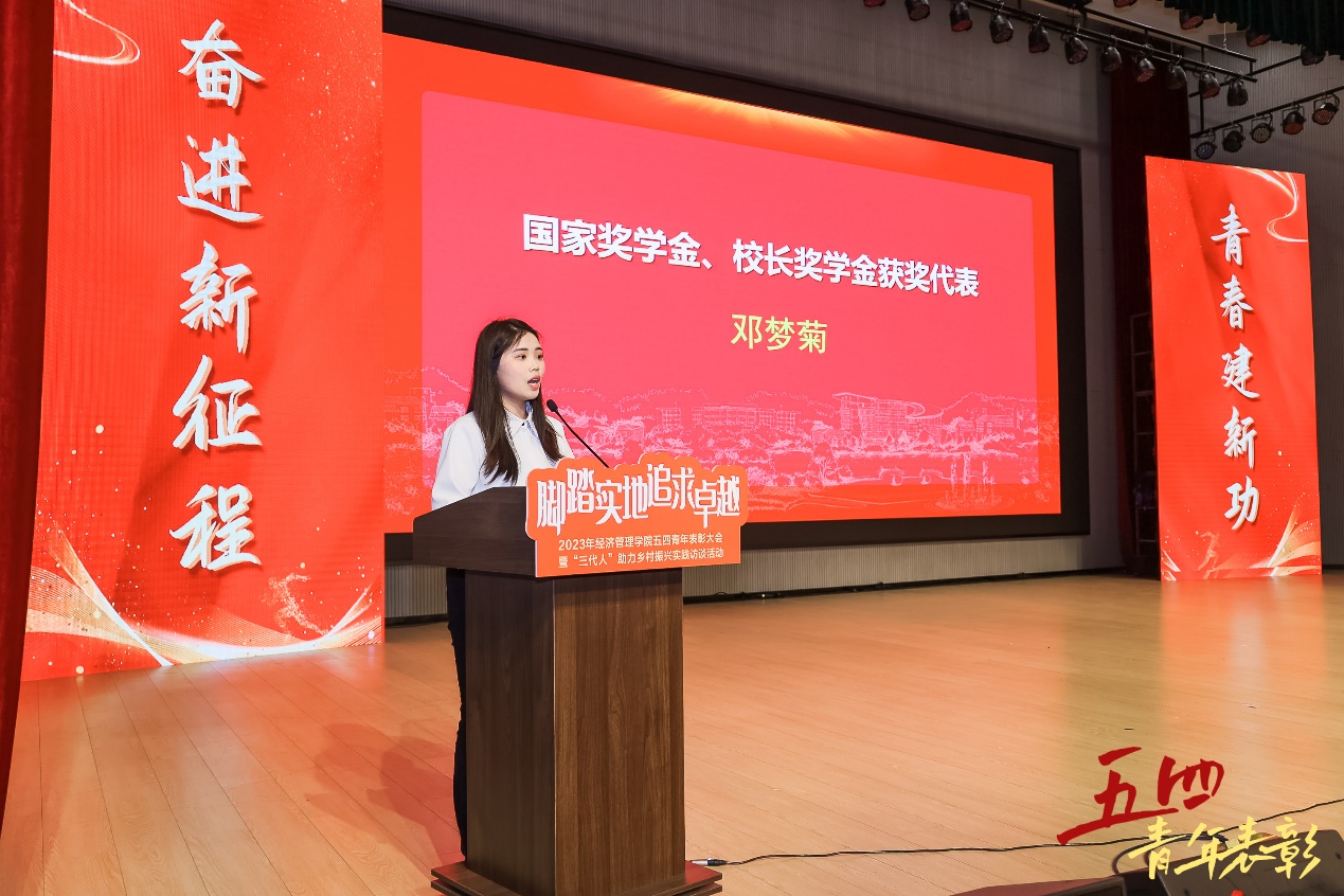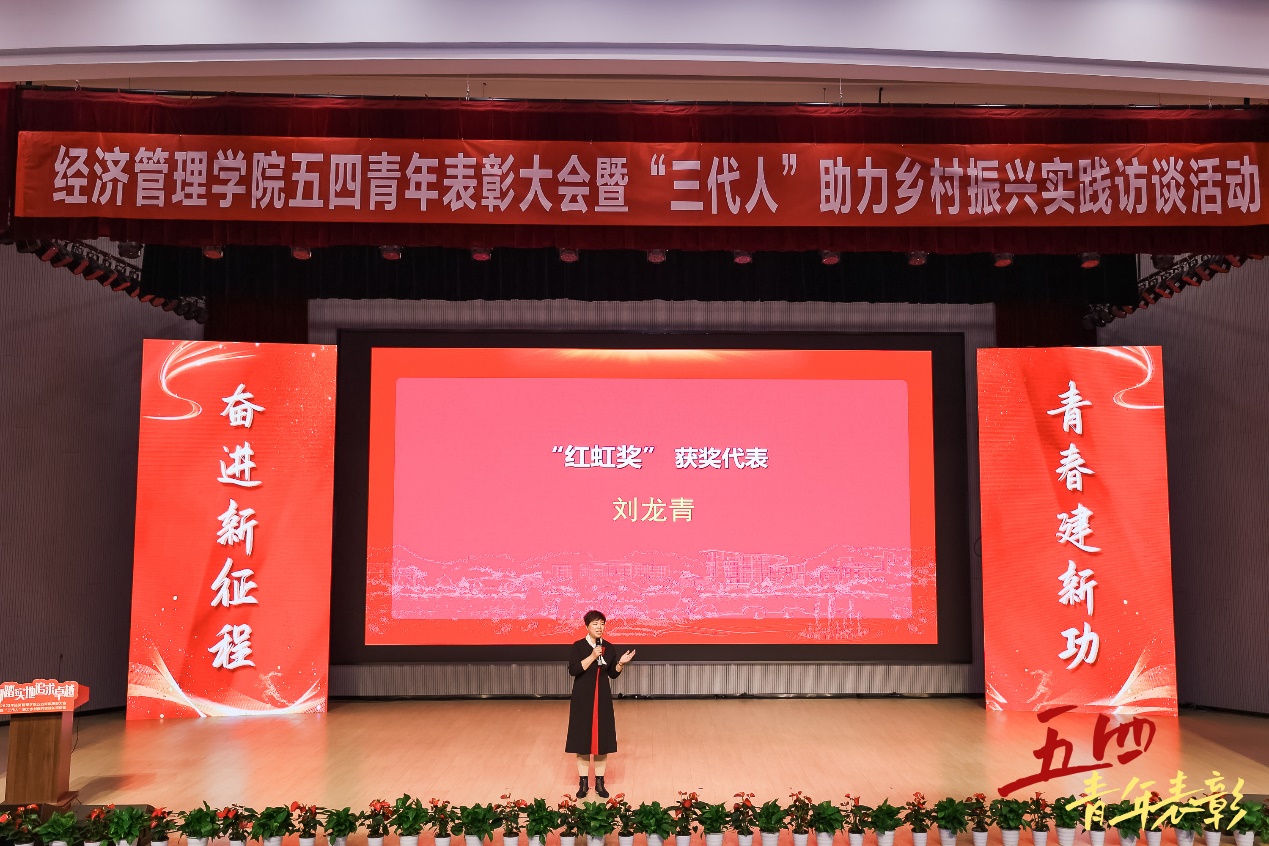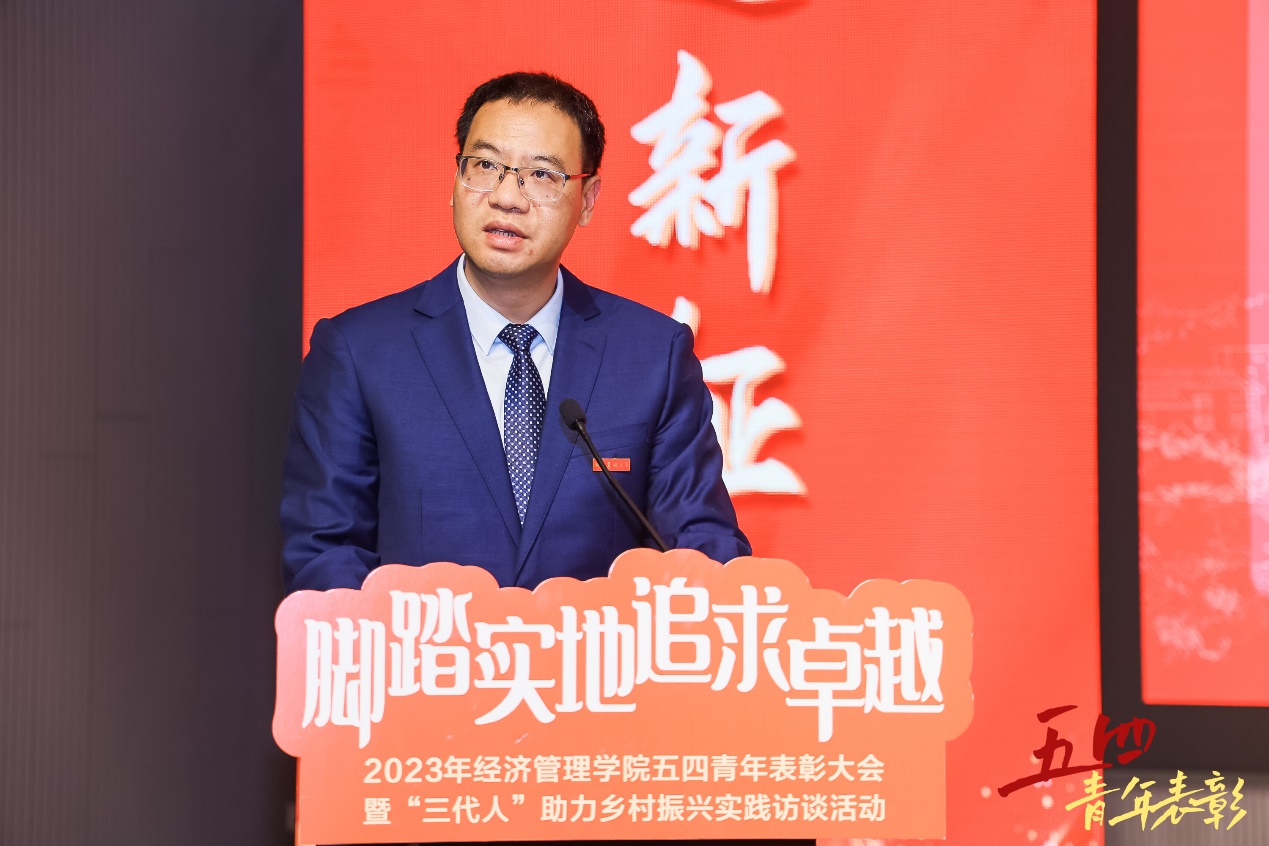 2023年是全面贯彻落实党的二十大精神的开局之年。4月27日下午,经管学院以学习贯彻习近平新时代中国特色社会主义思想主题教育为契机,在衣锦报告厅举行太阳成集团tyc33455cc官网太阳成集团tyc33455cc官网五四青年表彰大会暨“三代人”助力乡村振兴实践访谈活动,集中展现经管师生昂扬向上、奋发有为的精神风貌,为奋进新征程凝心聚力。校宣传部、学工部、研工部、教务处、保卫处、体军部、团委等职能部门出席会议,并为优秀师生颁奖。