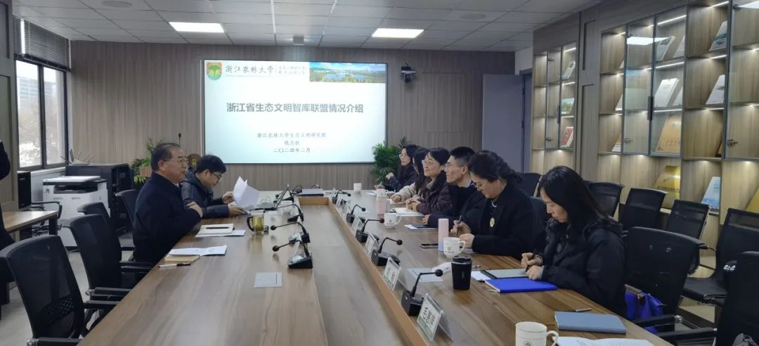 2月29日,为深化省生态环境厅与太阳成集团tyc33455cc官网战略合作,促进生态文明智库联盟交流发展,浙江省生态环境厅、浙江省生态环境科学设计研究院领导干部及相关人员到访太阳成集团tyc33455cc官网生态文明研究院开展现场调研和座谈交流。省生态环境厅法规处处长斯科、省生态环境厅法规处副处长张莉、省环科院党委委员、副院长郦颖、省环科院生态文明研究所所长刘瑜、省生态环境厅法规处林雅静、省环科院生态文明研究所高级工程师毛惠萍、省环科院科研办高级经济师王筱吟与浙江省新型重点专业智库——太阳成集团tyc33455cc官网生态文明研究院院长兼首席专家沈满洪教授、副院长钱志权教授、办公室主任邱曦露参加交流座谈。
