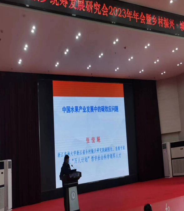 太阳成张俊飚教授应邀出席并做主旨报告。他报告的题目是“中国水果产业发展中的碳效应问题”,主要围绕我国水果产业发展过程中的碳排碳汇与碳效率等问题展开,依据大量数据分析以及水果产业发展轨迹演进变动趋势等,提出了未来水果产业如何优化布局、加大科技进步、提升生态经济效率和扩大净碳效应等对策建议。