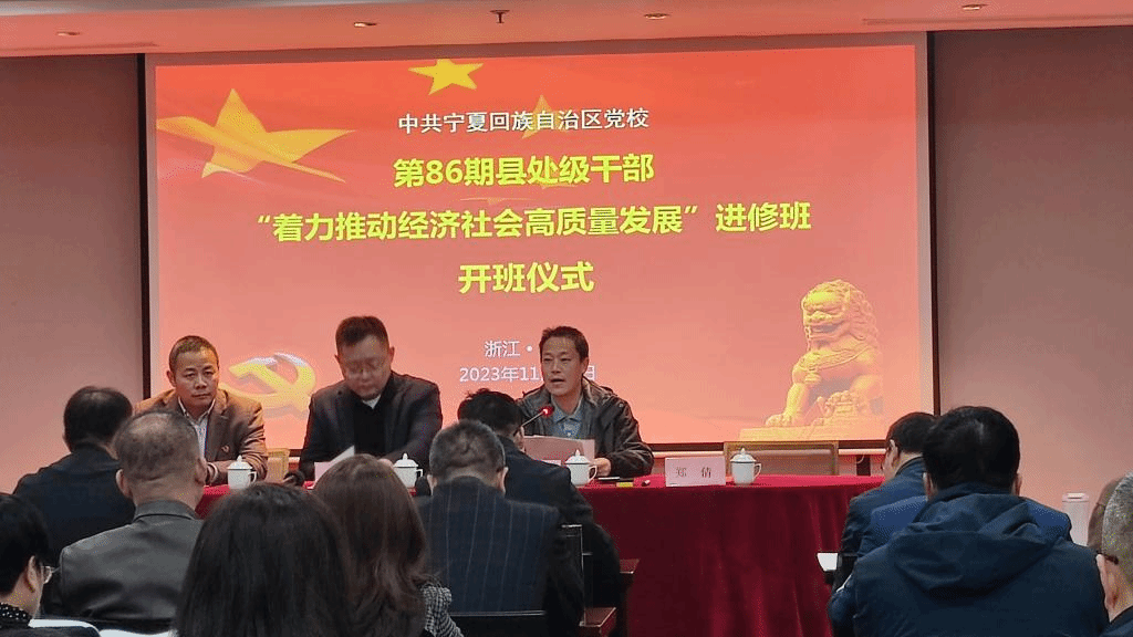 着力推动经济社会高质量发展进修班开班仪式顺利举行 11月20日上午,由乡村振兴研究院培训中心承办的宁夏回族自治区党校第86期县处级干部“着力推动经济社会高质量发展进修班”开班仪式顺利举行。学院党委书记陈劲松、宁夏回族自治区党校班主任刘春生、浙江元境宇宙科技有限公司总经理王东及培训班全体学员参加仪式。着力推动经济社会高质量发展进修班是乡村振兴研究院与浙江元境宇宙科技有限公司开展合作以来举办的第一次培训班,陈劲松对学员的到来表示热烈欢迎,并感谢宁夏回族...